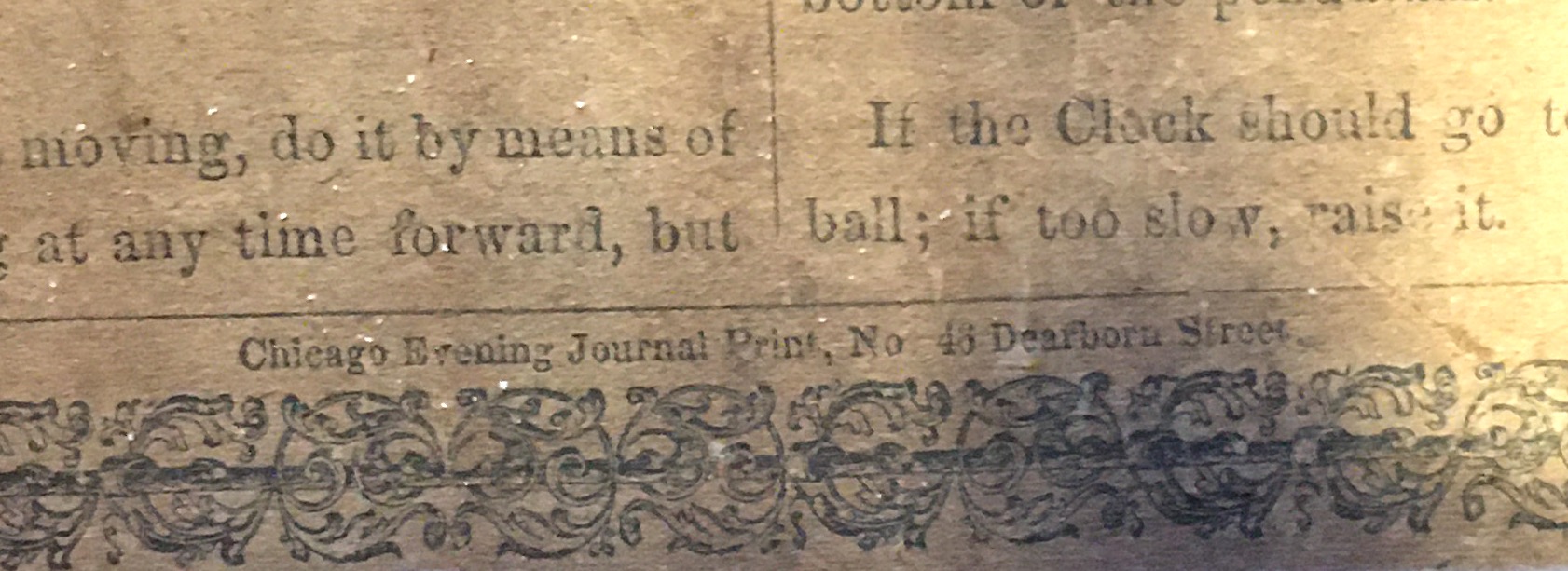 Detail of the printer’s line showing “Chicago Evening Journal Print, No. 48 Dearborn Street”.